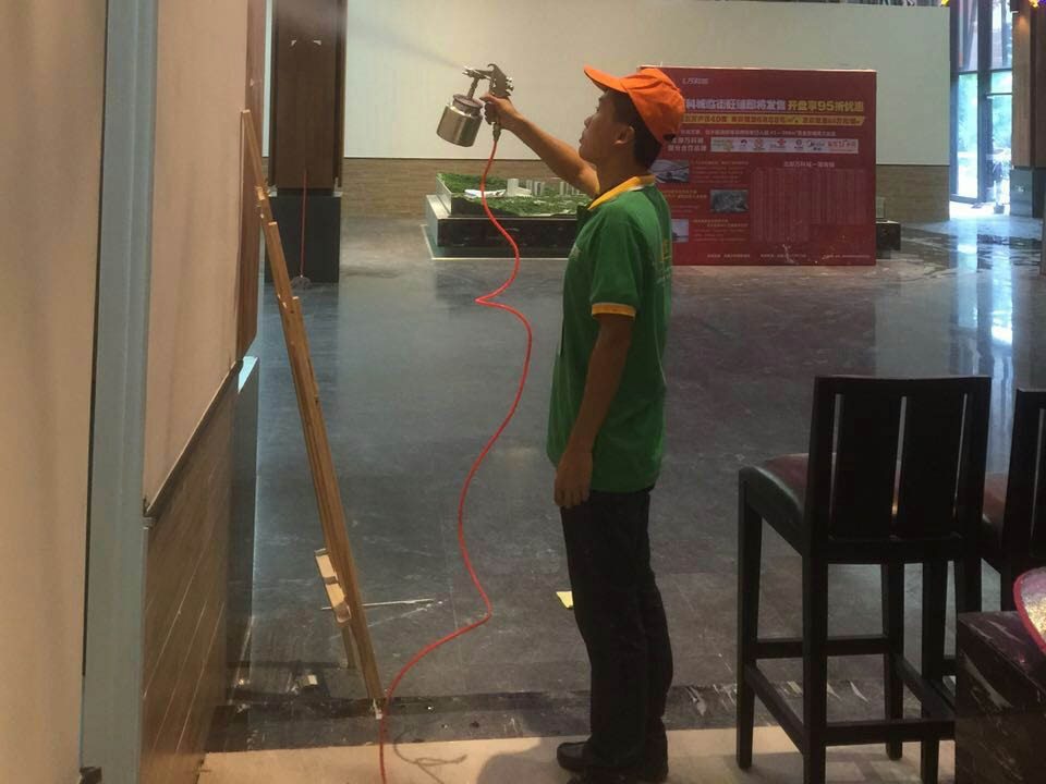2、綠居家工程師為不宜噴涂的物品做好覆膜保護(hù)工作;