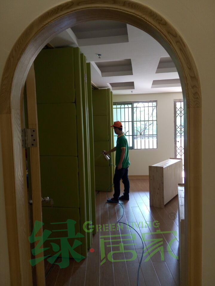 2、綠居家工程師為不宜噴涂的物品做好覆膜保護(hù)工作;