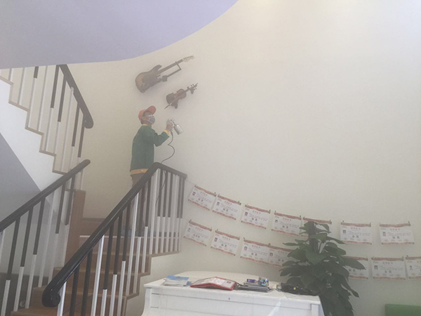 2、綠居家工程師為不宜噴涂的物品做好覆膜保護工作;