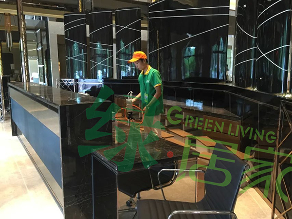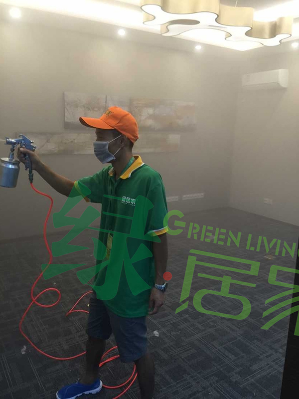 2、綠居家工程師為不宜噴涂的物品做好覆膜保護(hù)工作;