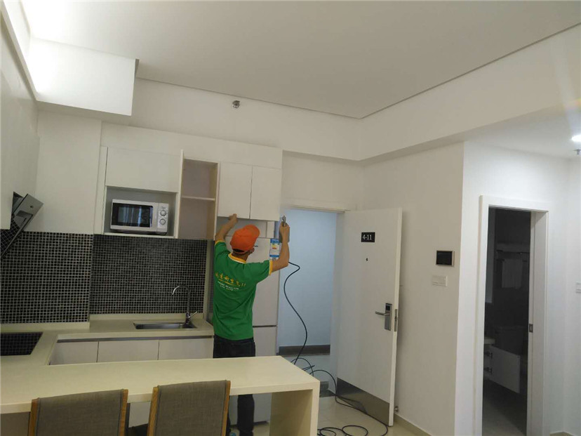 2、綠居家工程師為不宜噴涂的物品做好覆膜保護工作;