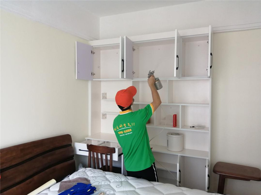 2、綠居家工程師為不宜噴涂的物品做好覆膜保護(hù)工作;