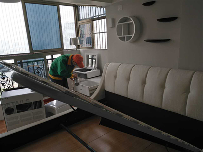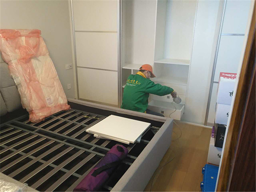 2、綠居家工程師為不宜噴涂的物品做好覆膜保護(hù)工作;