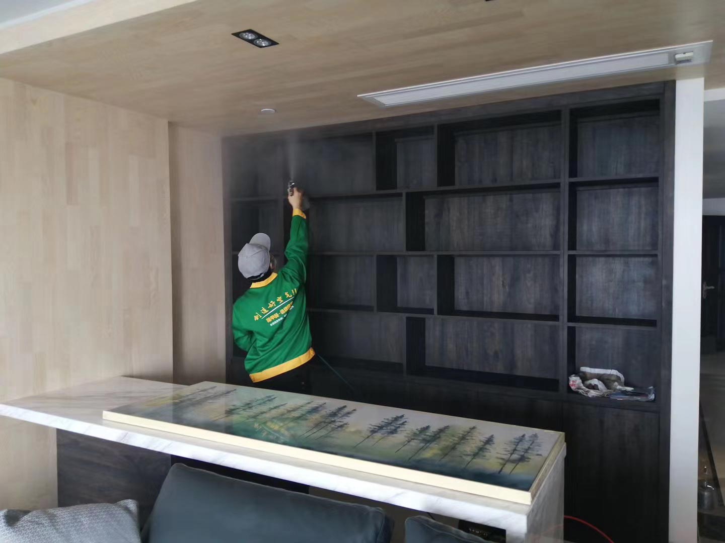 2、綠居家工程師為不宜噴涂的物品做好覆膜保護工作;