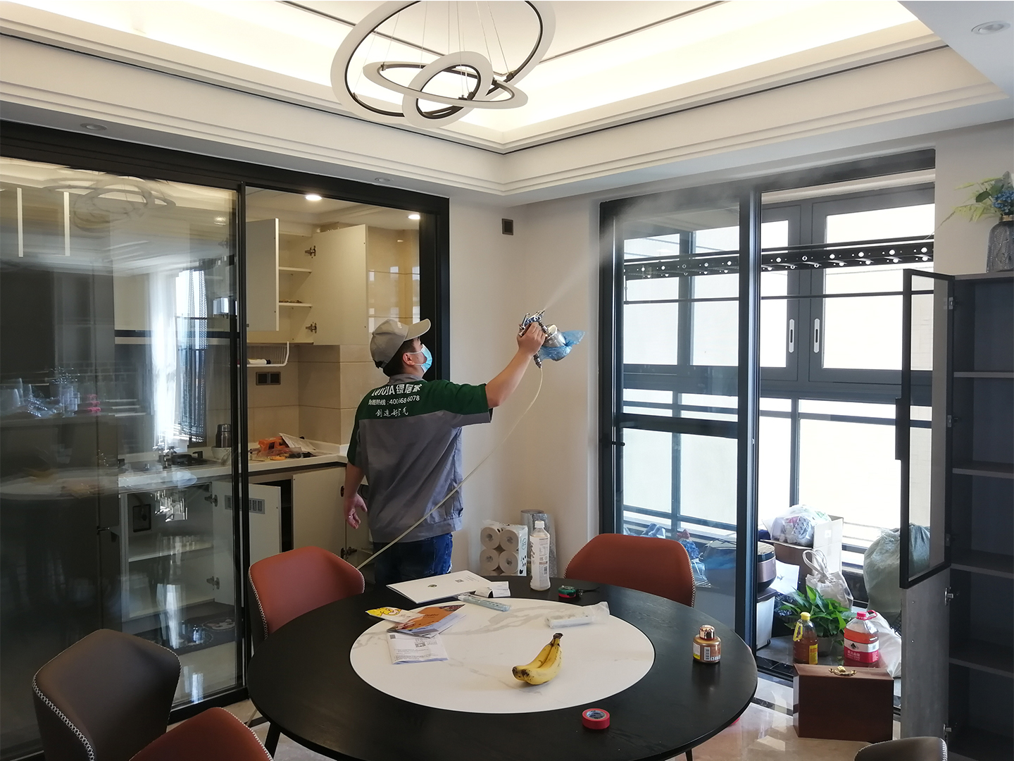 2、綠居家工程師在治理前將不宜噴涂的物品做好覆膜保護(hù)工作;