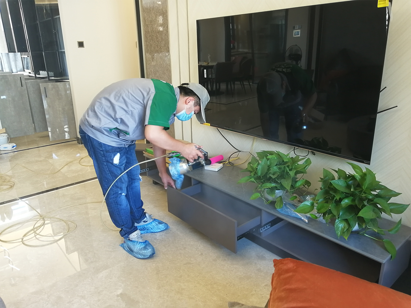 先對(duì)室內(nèi)進(jìn)行精確的空氣質(zhì)量檢測(cè),并對(duì)天花板、墻面、窗簾、地板、沙發(fā)、柜子、 床墊、房門等進(jìn)行360°全方位治理。