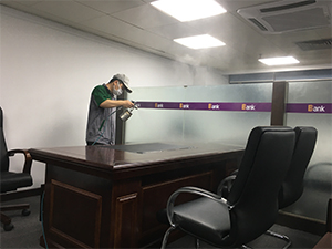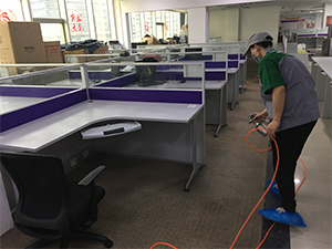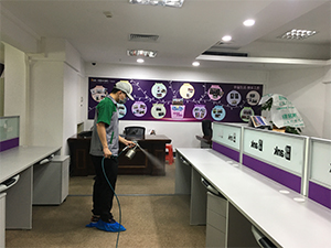 先對(duì)室內(nèi)進(jìn)行精確的空氣質(zhì)量檢測(cè),并對(duì)天花板、墻面、窗簾、辦公桌、辦公椅和文件柜等物品進(jìn)行360°全方位治理。