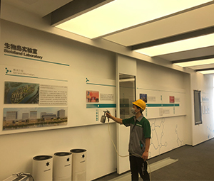 先對(duì)室內(nèi)進(jìn)行精確或權(quán)威的空氣質(zhì)量檢測,并對(duì)天花板、墻面、展廳、地毯等物品進(jìn)行360°全方位治理。并且在現(xiàn)場放置空氣凈化器免費(fèi)體驗(yàn)試用。