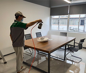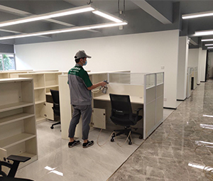 先對(duì)室內(nèi)進(jìn)行精確的空氣質(zhì)量檢測(cè),并對(duì)天花板、墻面、窗簾、辦公桌、辦公椅和文件柜等物品進(jìn)行360°全方位治理。