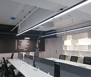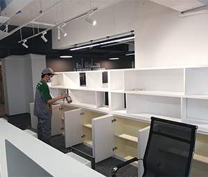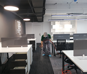 先對室內(nèi)進(jìn)行精確的空氣質(zhì)量檢測,并對天花板、墻面、窗簾、辦公桌、辦公椅和文件柜等物品進(jìn)行360°全方位治理。