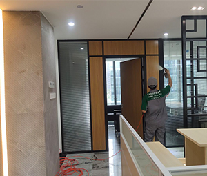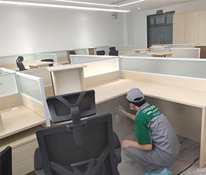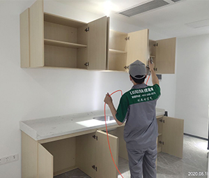 先對(duì)室內(nèi)進(jìn)行精確的空氣質(zhì)量檢測(cè),并對(duì)天花板、墻面、窗簾、辦公桌、辦公椅和文件柜等物品進(jìn)行360°全方位治理。
