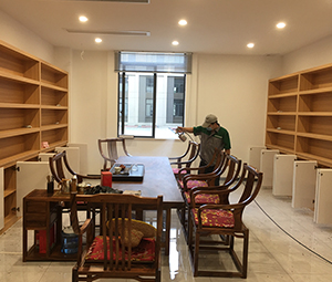先對室內(nèi)進行精確的空氣質(zhì)量檢測,并對天花板、墻面、窗簾、沙發(fā)、柜子、辦公桌和其他家具等物品進行360°全方位治理。