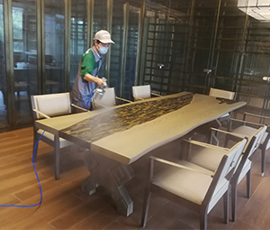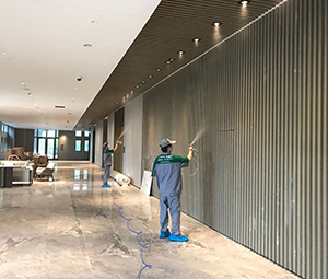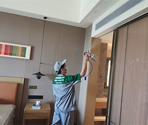 先對(duì)室內(nèi)進(jìn)行精確的空氣質(zhì)量檢測(cè),并對(duì)天花板、墻面、窗簾、木質(zhì)家具、沙發(fā)、辦公桌等物品進(jìn)行360°全方位治理。