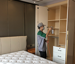 2、綠居家工程師在治理前將不宜噴涂的物品做好覆膜保護工作;