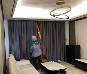 首先先對室內進行精確的空氣質量檢測,并對天花板、墻面、窗簾、沙發(fā)、柜子、 床墊等進行360°全方位治理。