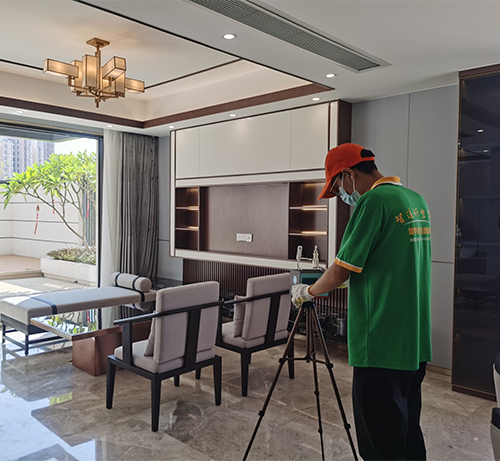 先對室內(nèi)進(jìn)行精確的空氣質(zhì)量檢測,并對天花板、墻面、窗簾、沙發(fā)、柜子和其他家具等物品進(jìn)行360°全方位治理。