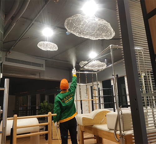 先對(duì)室內(nèi)進(jìn)行精確的空氣質(zhì)量檢測(cè),并對(duì)天花板、墻面、沙發(fā)、柜子、辦公桌、健身器材、物品架和其他家具等物品進(jìn)行360°全方位治理。