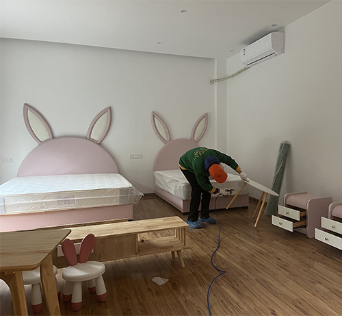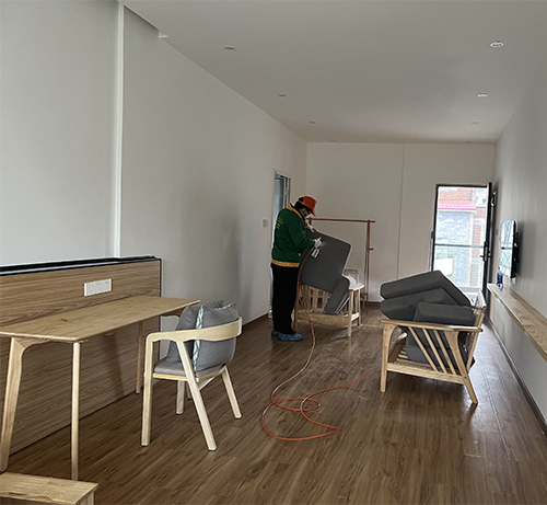先對(duì)客房室內(nèi)進(jìn)行精確的空氣質(zhì)量檢測,并對(duì)天花板、墻面、沙發(fā)、柜子、辦公桌和其他家具等物品進(jìn)行360°全方位治理。