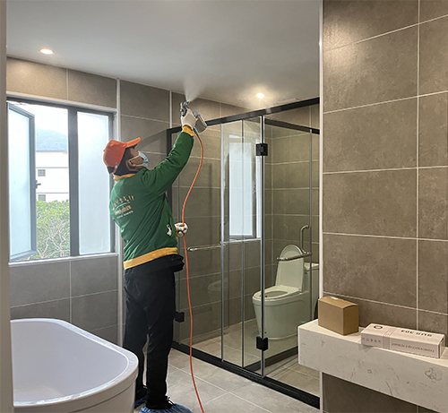 2、綠居家工程師在治理前將不宜噴涂的物品做好覆膜保護(hù)工作;