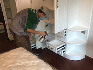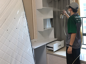 2、綠居家工程師在治理前將不宜噴涂的物品做好覆膜保護(hù)工作;