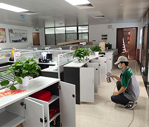 先對室內(nèi)進(jìn)行精確的空氣質(zhì)量檢測,并對天花板、墻面、窗簾、地板、辦公桌、辦公椅、沙發(fā)、文件柜等物品進(jìn)行360°全方位治理。